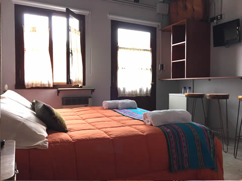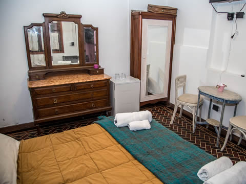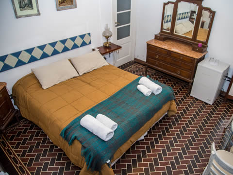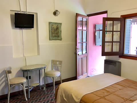 Doble con cama matrimonial o twin. Baño privado con ducha. Tv pantalla plana de 32, frigobar, wi fi, calefacción, ventilador y aire acondicionado. Piso calcáreo original.