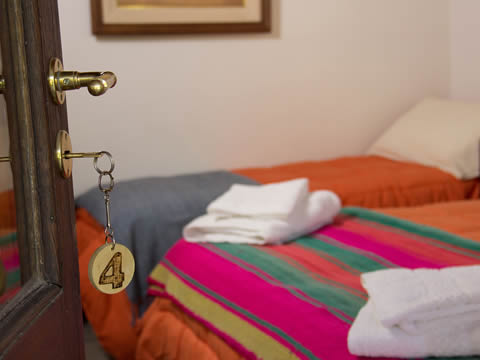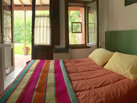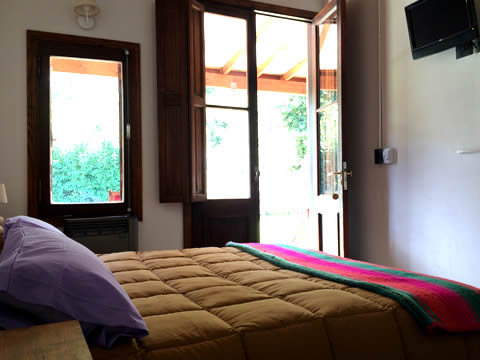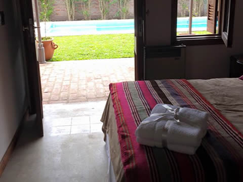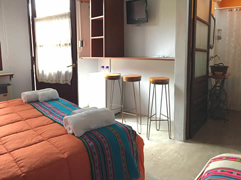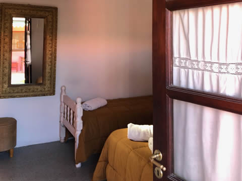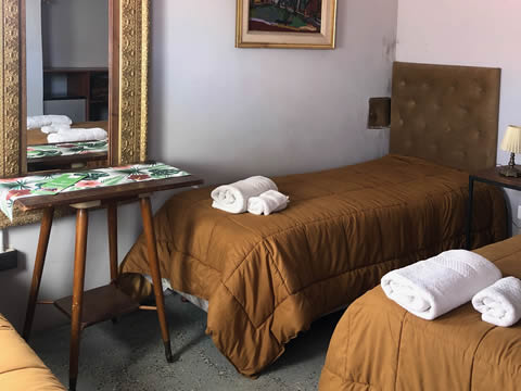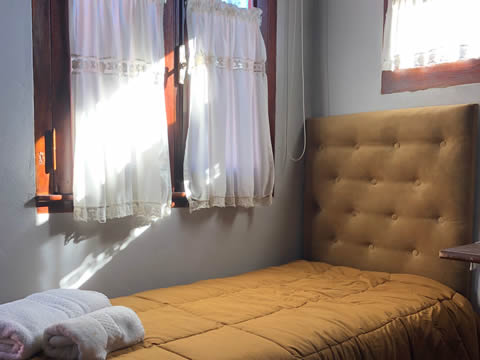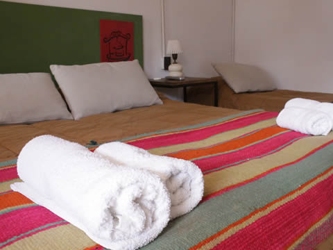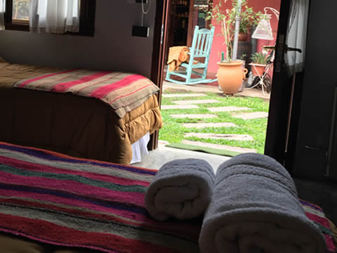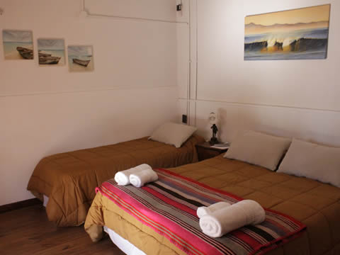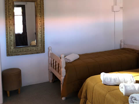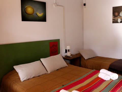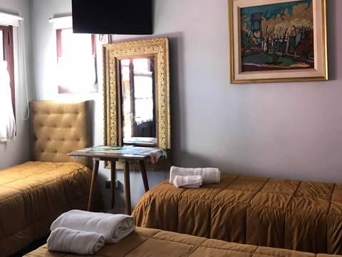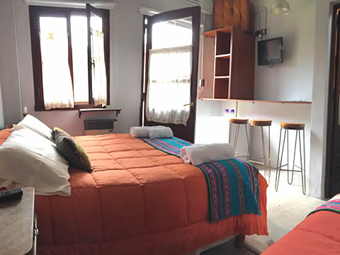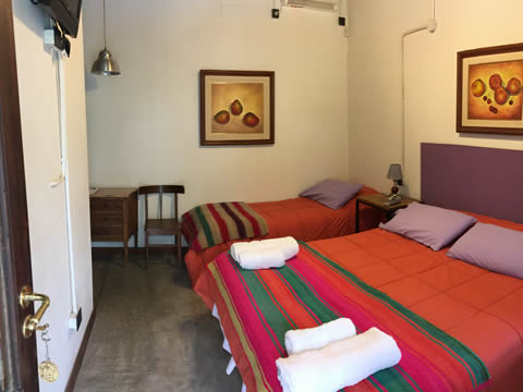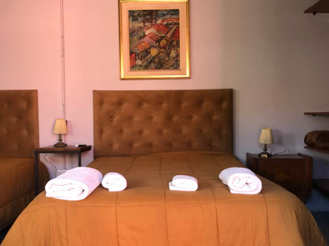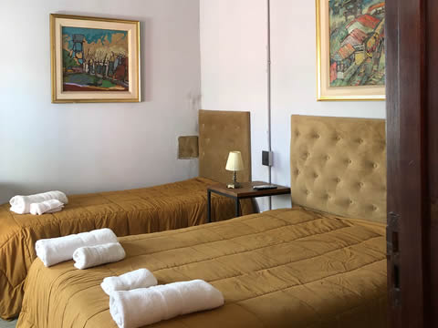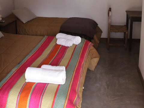 Doble o triple, cama matrimonial y 1 twin o 3 twin a pedido. Baño privado con bañera con patas. Tv pantalla plana de 32, frigobar, wi fi, calefacción, ventilador y aire acondicionado. Piso de cemento alisado. Las Habitaciones 4 y 5 se unen por dentro formando una sextuple con 2 baños a pedido.