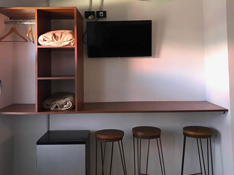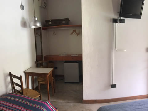 Doble o triple. Baño privado con bañera con hidromasajes. Tv pantalla plana de 32, frigobar, wi fi, calefacción, ventilador y aire acondicionado. Piso de cemento alisado.