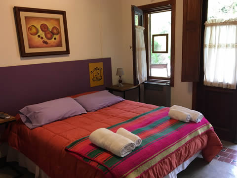 Doble o triple, cama matrimonial y 1 twin o 3 twin a pedido. Baño privado con bañera con patas. Tv pantalla plana de 32, frigobar, wi fi, calefacción, ventilador y aire acondicionado. Piso de cemento alisado.